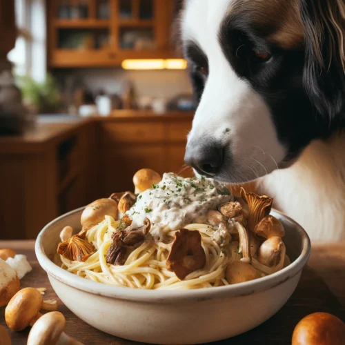 Romige pasta met paddestoelen en roomsaus.